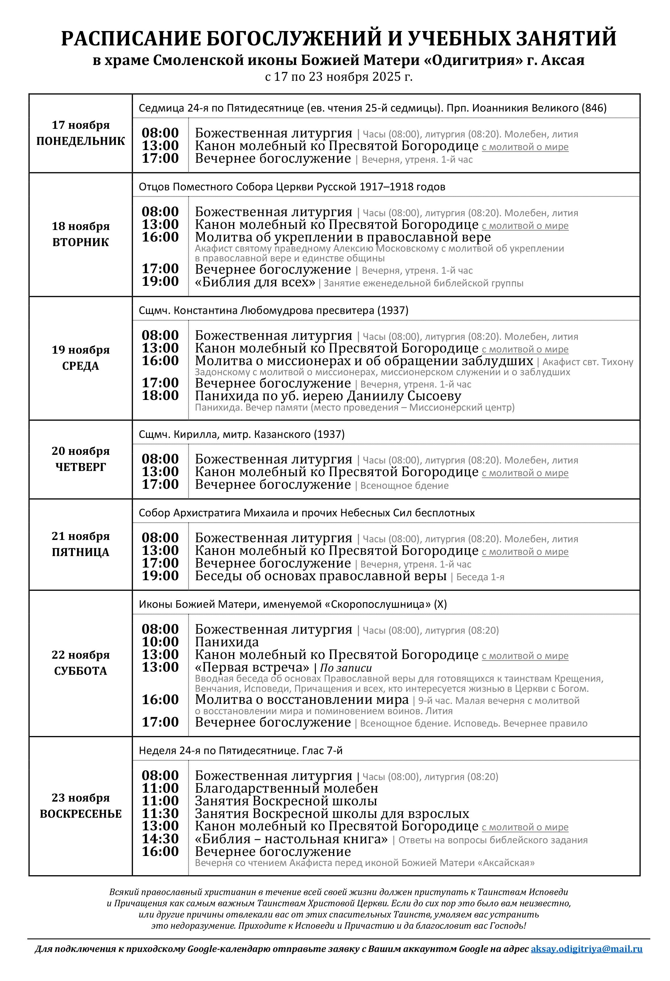 Что еще нужно: Соучастие в Литургии. Выучить наизусть из книги Исход 20 главы 2-17 стихи. Продуктовый набор для нуждающихся** (4 раза)